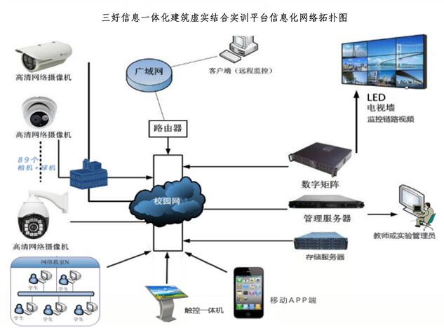 三好職業(yè)教育信息化綜合服務(wù)平臺(tái)以數(shù)字化的視頻壓縮、傳輸、存儲(chǔ)和播放為核心,通過設(shè)立中心平臺(tái)實(shí)現(xiàn)對(duì)系統(tǒng)內(nèi)所有教學(xué)設(shè)施展示區(qū)節(jié)點(diǎn)區(qū)視頻的集中管理與控制,用戶僅需通過IE瀏覽器登錄中心監(jiān)控平臺(tái),即可實(shí)現(xiàn)全網(wǎng)中各個(gè)監(jiān)控點(diǎn)的控制和圖像的調(diào)用與瀏覽。平臺(tái)以網(wǎng)絡(luò)化傳輸、數(shù)字化處理為基礎(chǔ),以各類功能與應(yīng)用的整合與集成為核心,實(shí)現(xiàn)單純的圖像聯(lián)動(dòng)、流媒體、圖像識(shí)別等應(yīng)用。高標(biāo)準(zhǔn)的信息一體化教學(xué)體系,讓三好英才學(xué)校在信息化、智慧化教學(xué)方面為樹立了行業(yè)標(biāo)桿。