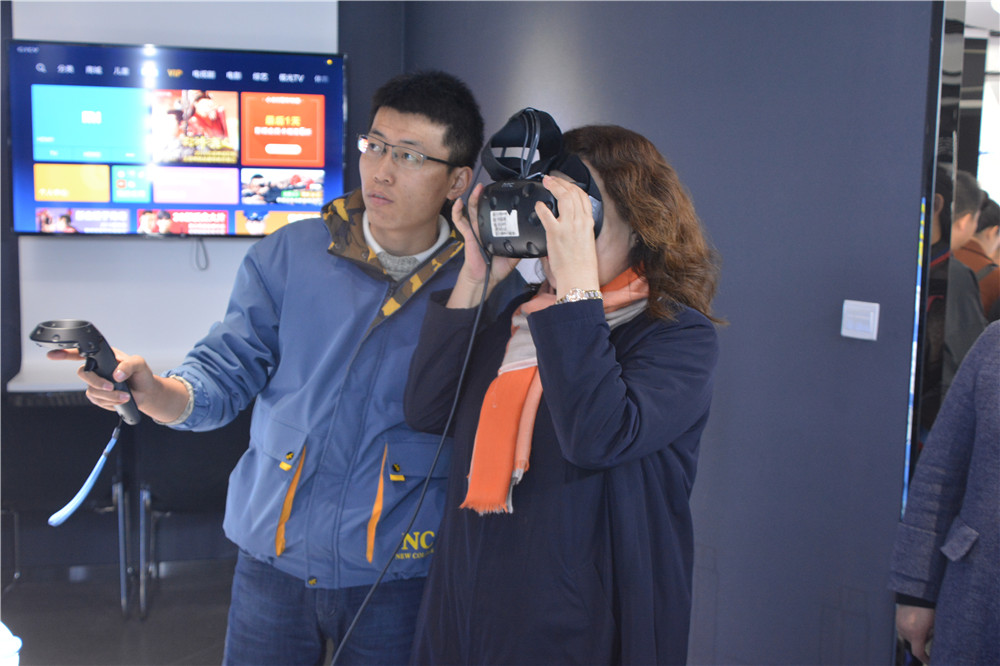 一行首先參觀體驗(yàn)了三好雙創(chuàng)職業(yè)技能培訓(xùn)中心,三好軟件副總經(jīng)理張倪做全程講解。講解中張副總提到,雙創(chuàng)職業(yè)技能培訓(xùn)中心作為西安三好英才職業(yè)技能培訓(xùn)學(xué)校開展職業(yè)教育的主要載體之一,在培訓(xùn)評價體系構(gòu)建、課程體系建設(shè)、課程資源開發(fā)、信息一體化實(shí)訓(xùn)平臺建設(shè)等方面全面響應(yīng)國家職業(yè)教育改革政策要求,集中體現(xiàn)了三好職業(yè)教育模式在培養(yǎng)新時期職業(yè)技能人才方面的時代承接與社會擔(dān)當(dāng)。雙創(chuàng)中心完備的教學(xué)體系、豐富的教學(xué)內(nèi)容、先進(jìn)的虛實(shí)結(jié)合信息一體化教學(xué)技術(shù)給參觀一行人留下了深刻印象。