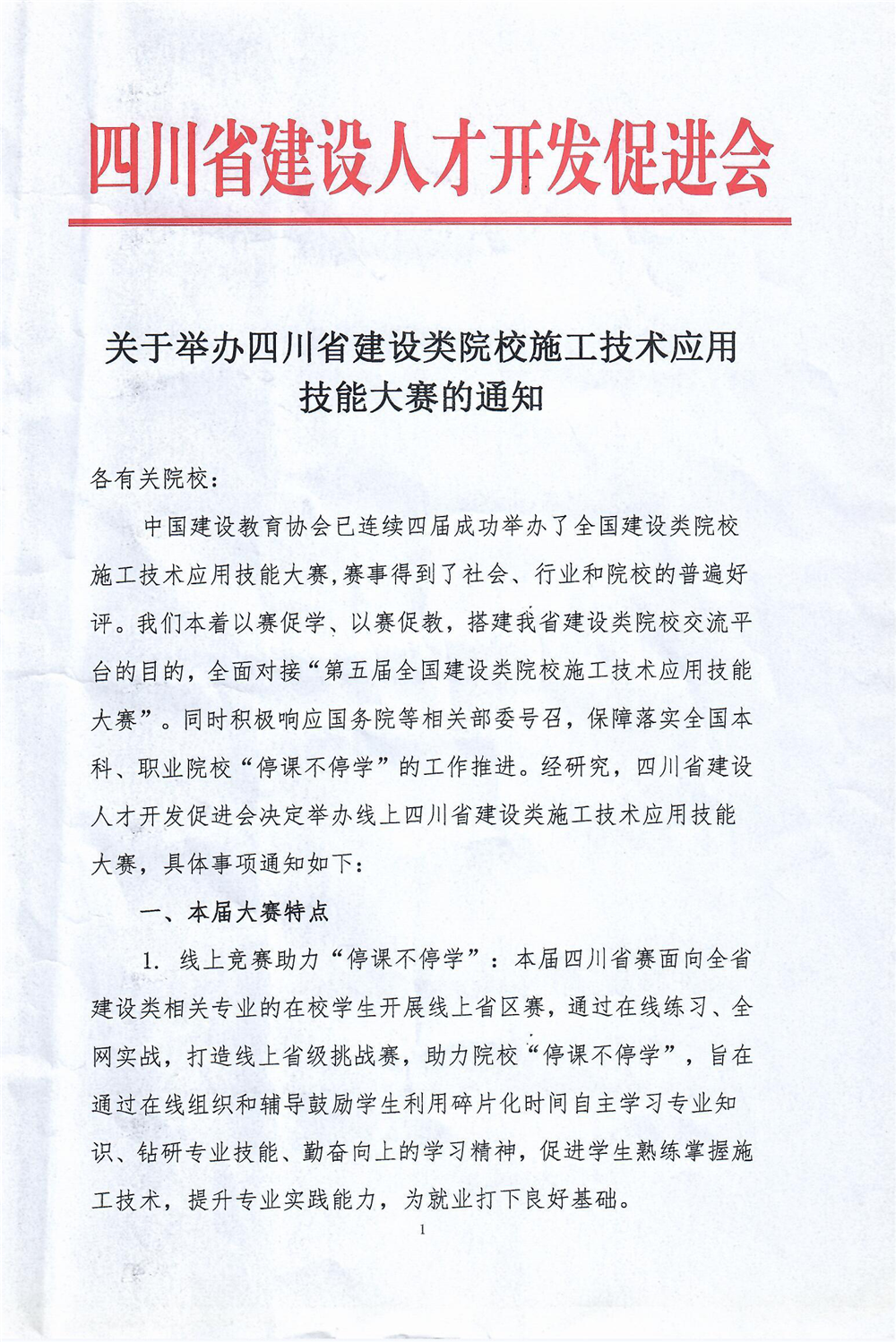 中國建設(shè)教育協(xié)會(huì)已連續(xù)四屆成功舉辦了全國建設(shè)類院校施工技術(shù)應(yīng)用技能大賽,賽事得到了社會(huì)、行業(yè)和院校的普遍好評(píng)。我們本著以賽促學(xué)、以賽促教,搭建我省建設(shè)類院校交流平臺(tái)的目的,全面對(duì)接“第五屆全國建設(shè)類院校施工技術(shù)應(yīng)用技能大賽”。同時(shí)積極響應(yīng)國務(wù)院等相關(guān)部委號(hào)召,保障落實(shí)全國本科、職業(yè)院校“停課不停學(xué)”的工作推進(jìn)。經(jīng)研究,四川省建設(shè)人才開發(fā)促進(jìn)會(huì)決定舉辦線上四川省建設(shè)類施工技術(shù)應(yīng)用技能大賽,具體事項(xiàng)通知如下: