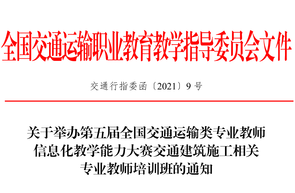 關(guān)于舉辦第五屆全國交通運輸類專業(yè)教師信息化教學(xué)能力大賽交通建筑施工相關(guān)專業(yè)教師培訓(xùn)班的通知